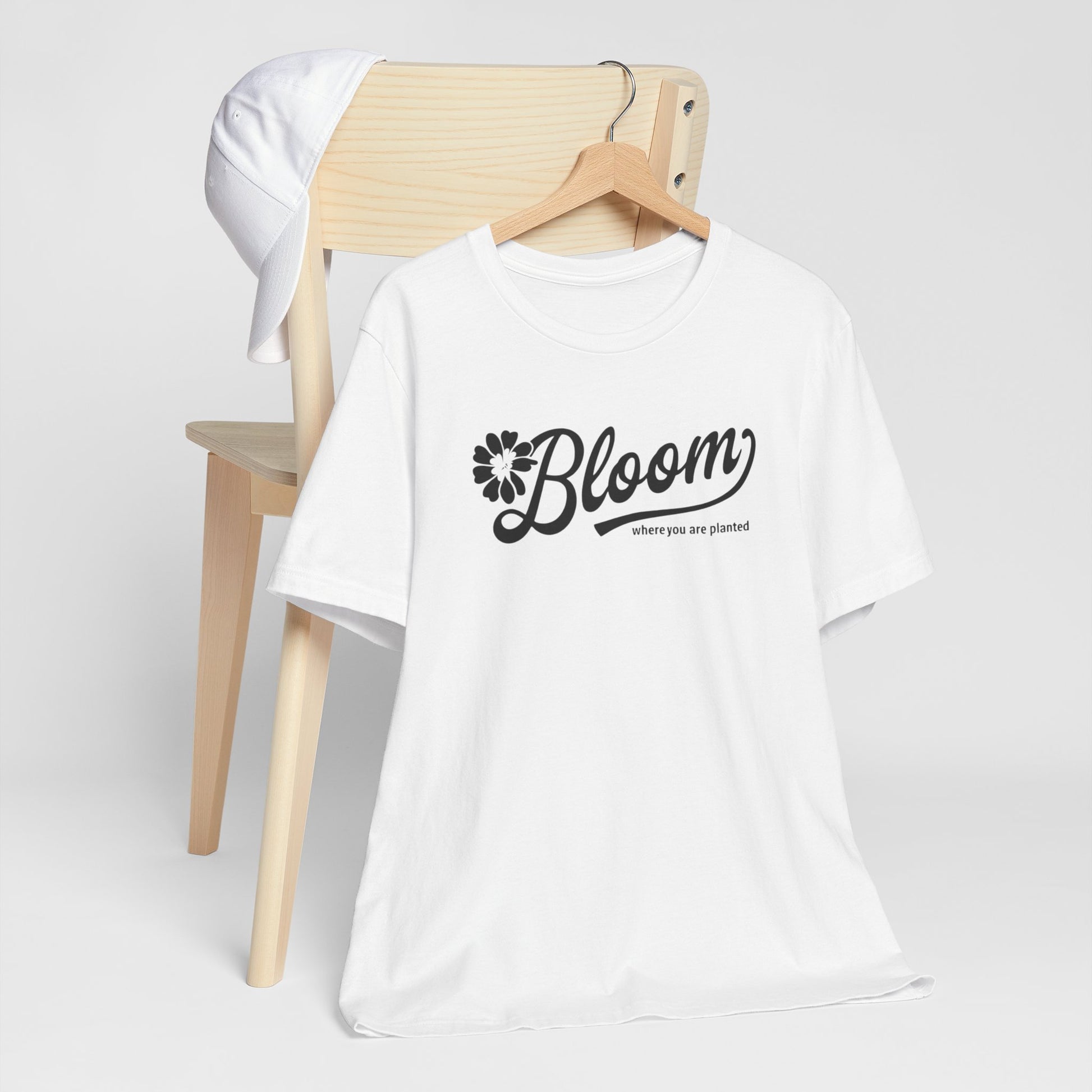 Level up your laid-back Casual Friday game with the "Bloom" T-Shirt—the soft, stylish reminder whether you're aiming for that corner office or just a little more confidence in your step, this tee reminds you to take every opportunity to grow.